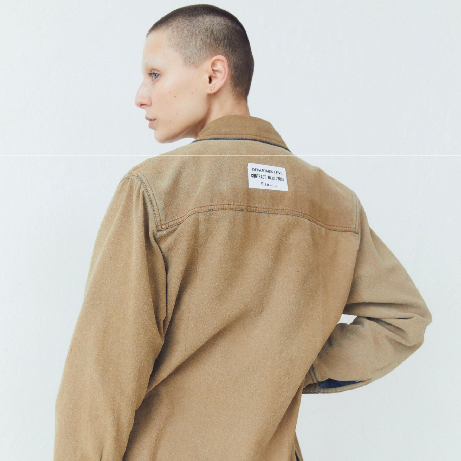 Fully lined interior, straight fit, faux leather over-collar, peak lapels, two flap pockets and one welt pocket on the front, front fastening with custom buttons, straight hem