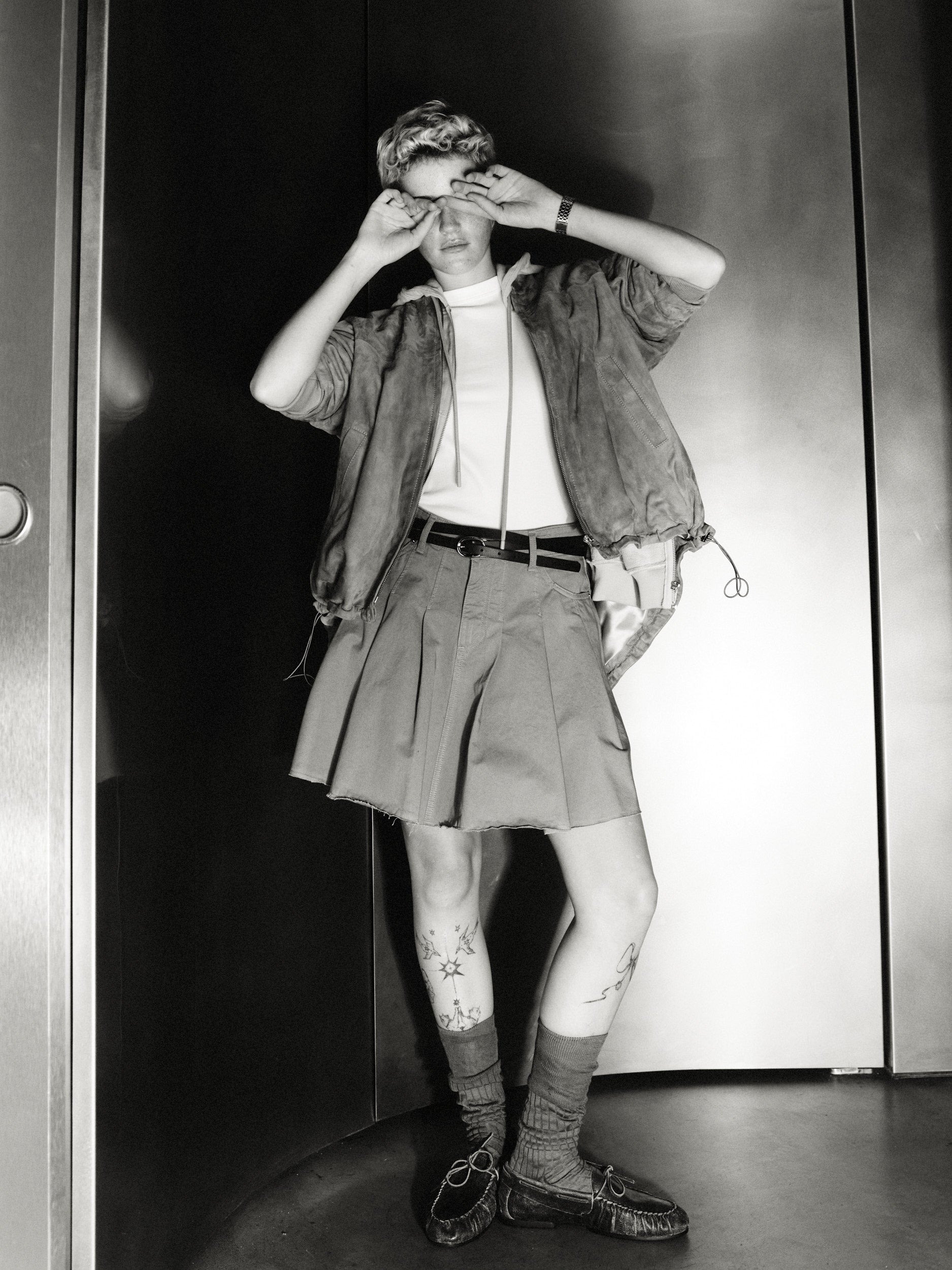 Ross pleated gabardine miniskirt